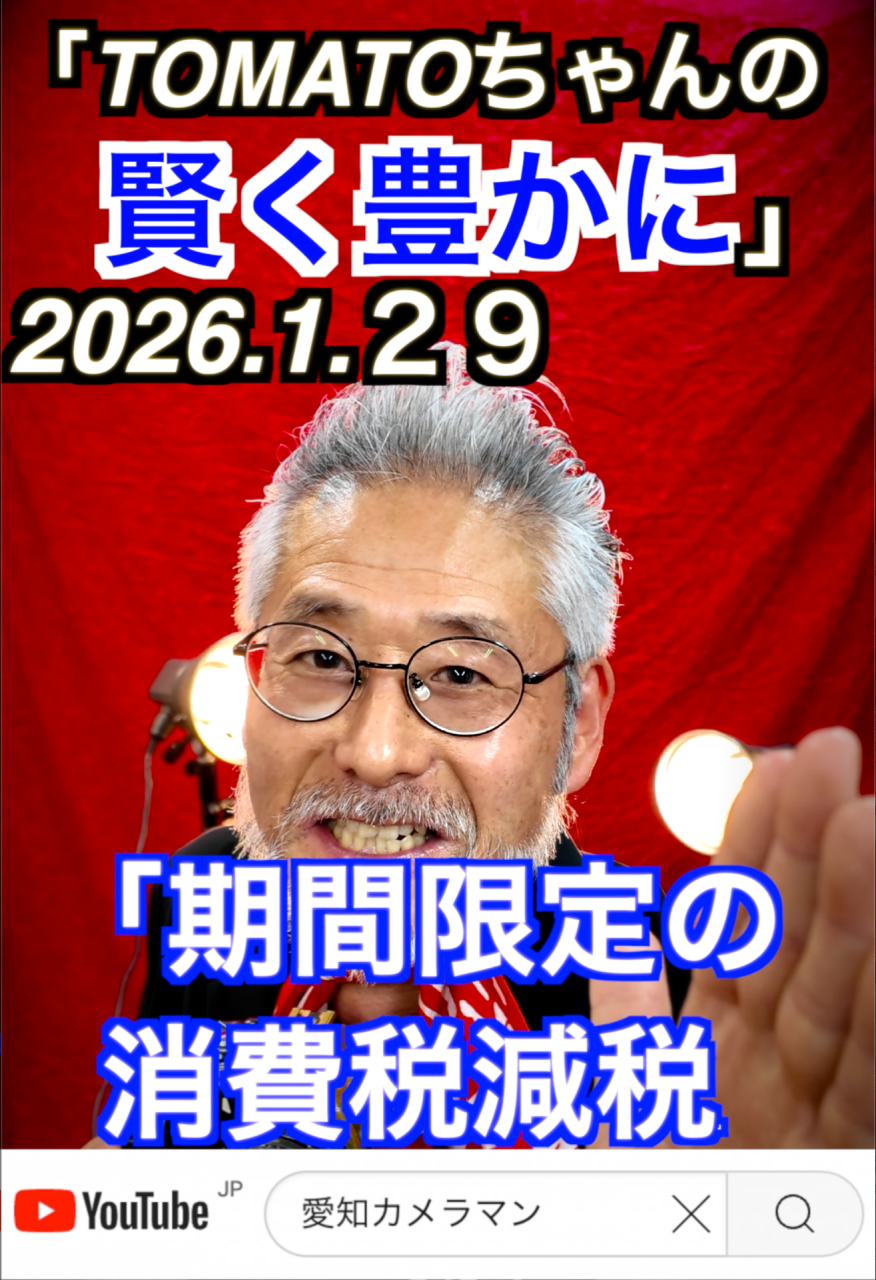 皆様〜〜〜〜〜おっはよぉ〜〜〜ございMAX 2026年1月29日モック曜日 TOMATO ちゃんの世界をhappyに 今日のテーマは「消費税減税」デス 是非是非YouTubeにてご覧ください。 今日もいろいろ頑張りMAX お客様の利益を第一に 今日も何があっても大丈夫 #コンサルタントカメラマン #ドローン撮影 #仕事依頼 #愛知カメラマン #売り上げアップ #名古屋カメラマン #インフルエンサー #動画カメラマン #YouTube #食道癌 #マイナンバーカード #メリット #デメリット #住所変更 #個人情報 #運転免許証 #市役所 #お得情報 「実現しないことは何でも言える」1月29日 #賢く豊かに#愛知カメラマン#名古屋カメラマン#コンサルタントカメラマン#ポジティブ#お得#情報##業績#売上げ#選挙#自民党#高市#政権#経済 日々の日常でのお役立て情報や企業やお店などが売上げや業績を上げることができる情報などを発信しております。ドローン撮影を始め様々なショートムービーなどやインフルエンサー広告などもご紹介させていただいております。愛知のカメラマン コンサルタントカメラマン です。